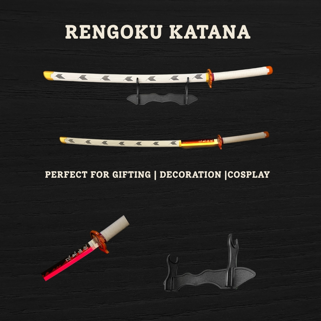 This Rengoku-style LED katana, inspired by Demon Slayer, is made from durable bamboo wood with a smooth, polished finish for a realistic look.