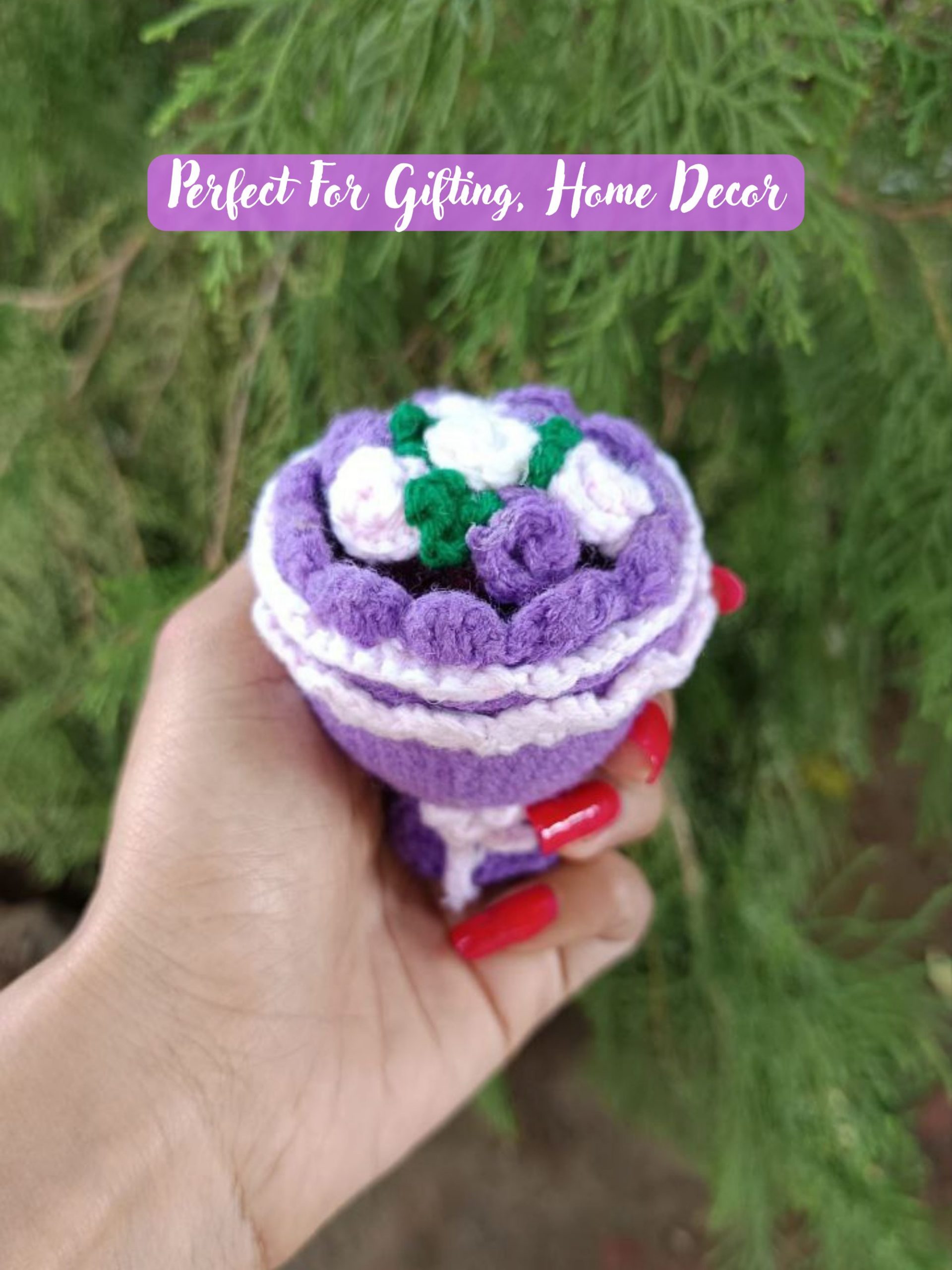 This crochet reversible bouquet doll is a special handmade gift. With just a flip, it changes from a pretty flower bouquet into a cute doll. Made with soft yarn and lots of care, it is safe, durable, and full of charm.