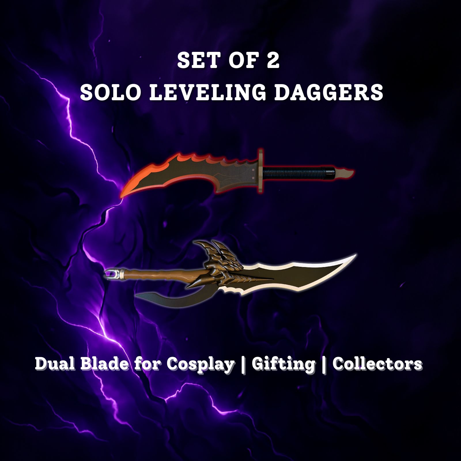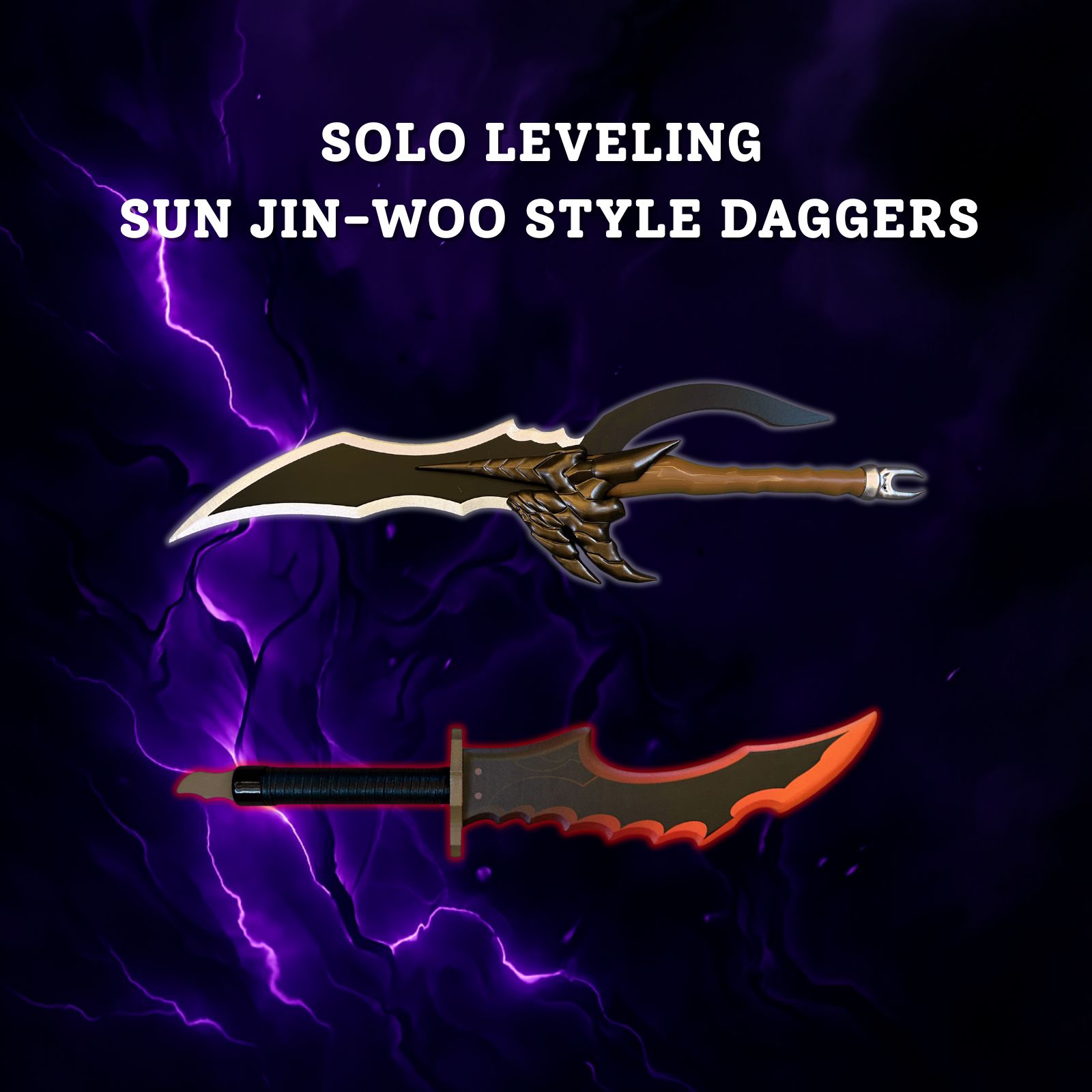 - AUTHENTIC DESIGN: High-quality replica set of two iconic daggers from Solo Leveling – the Knight Killer and Kasaka’s Venom Fang, perfect for collectors and enthusiasts