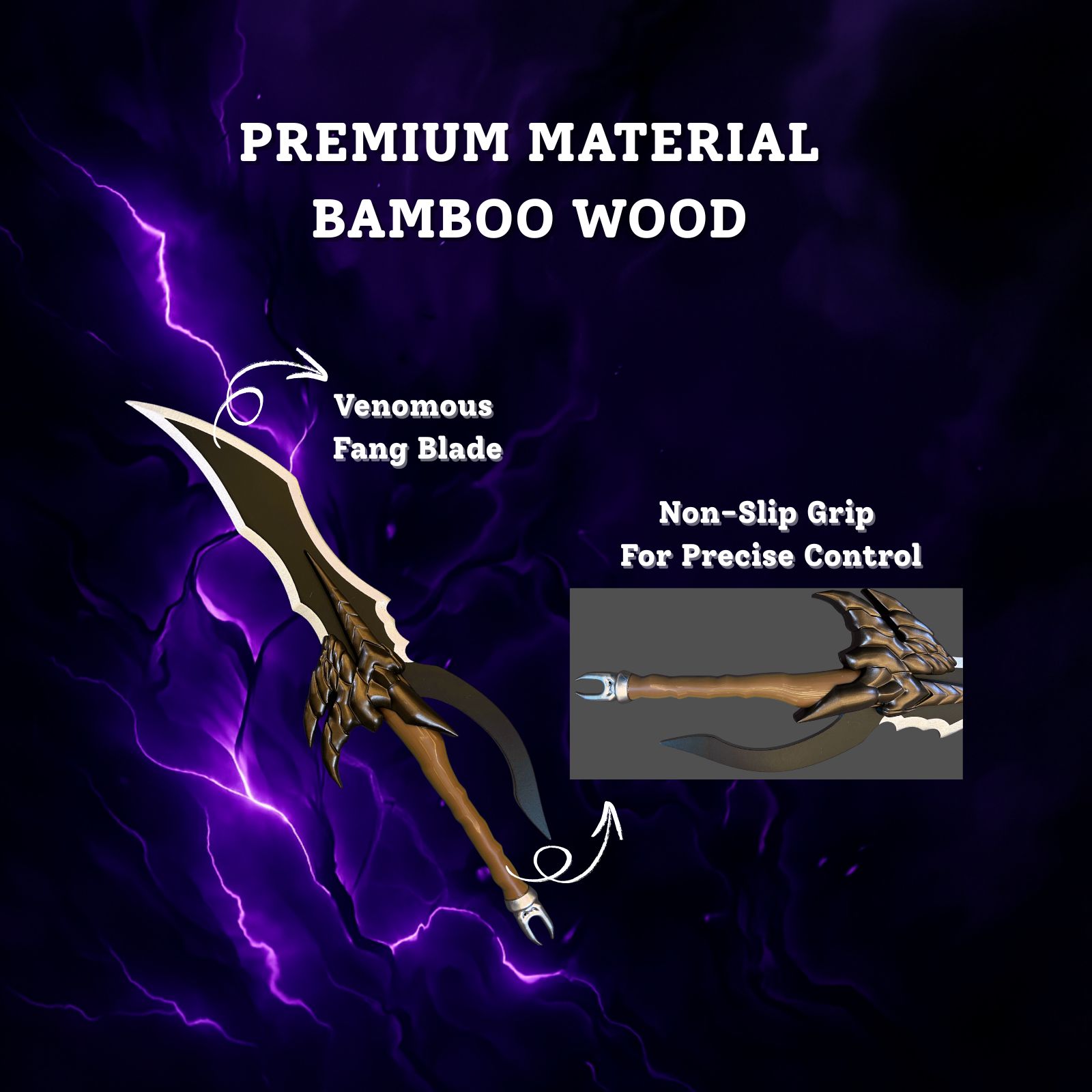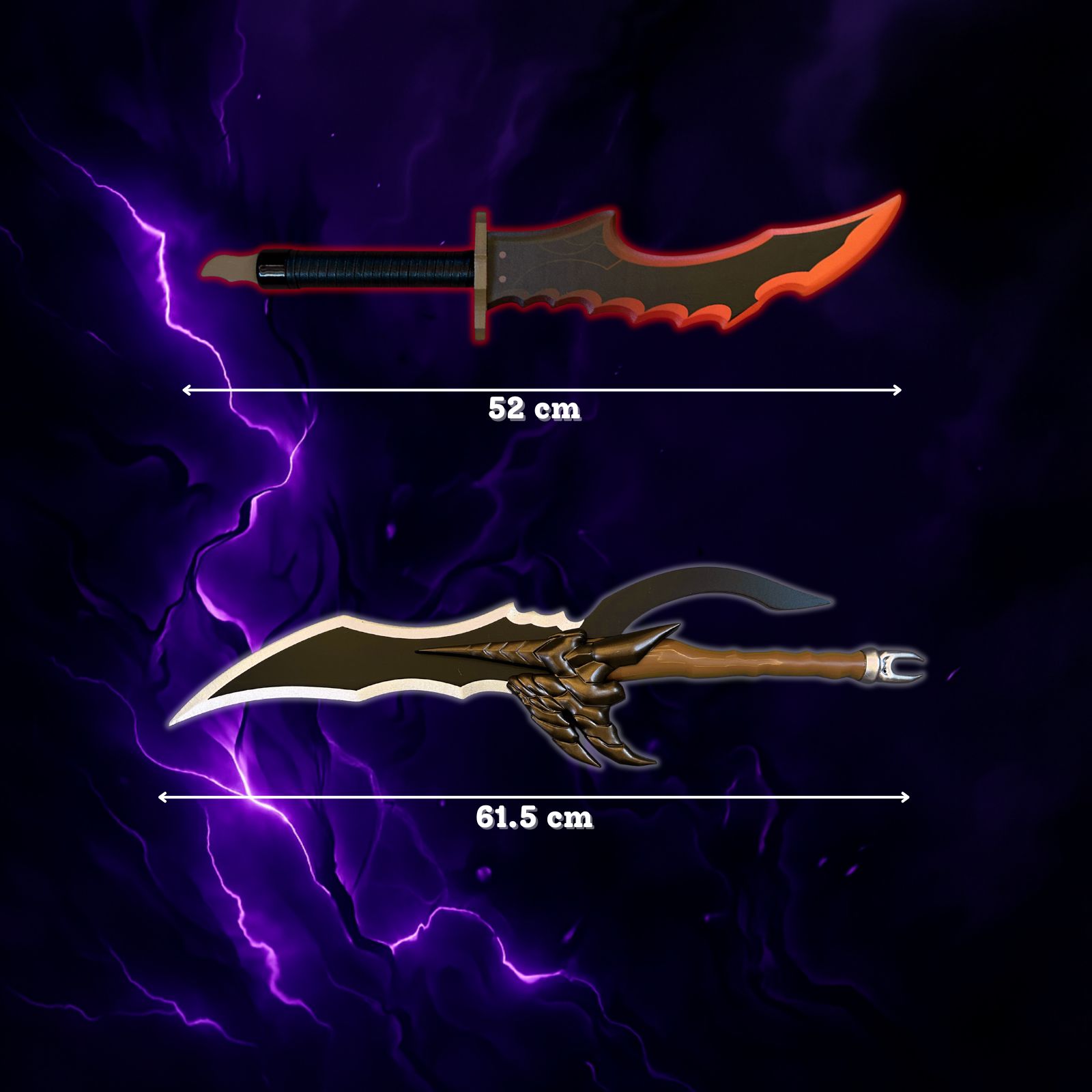 - What You Get: 1 × Venom Fang Dagger (Wooden, 61.5 cm) 1 × Knight Killer Sword (Wooden, 52 cm) Length: Approx. 60 cm